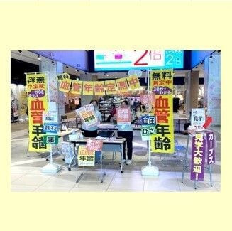 地域の女性に「健康増進・筋肉トレーニングの大切さ」を知っていただく為にテナント店舗を中心に楽しく元気なイベントを年数回開催しています。「血管年齢測定会」は無料で気軽にご参加できる為、長蛇の列が出来るほどの人気イベントになっています。地域の方とも交流を深めます。